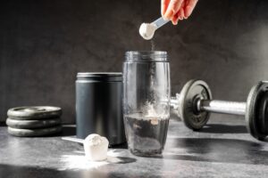 Amino,Acid,Food,Supplement,,Creatine,Powder,In,A,Measuring,Scoop,